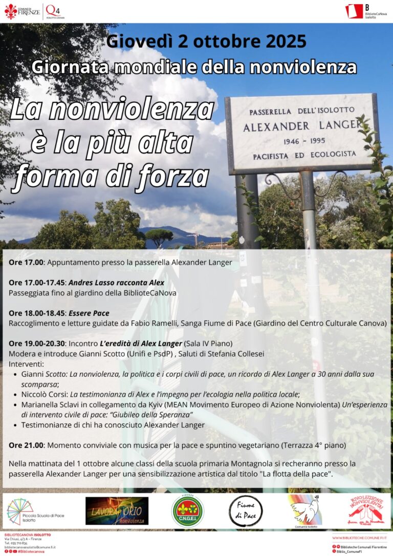 Giovedì 2 ottobre 2025 in occasione della Giornata Giornata mondiale mondiale della Nonviolenza Ore 17.00: Appuntamento presso la passerella Alexander Langer Ore 17.00–17.45: Andres Lasso